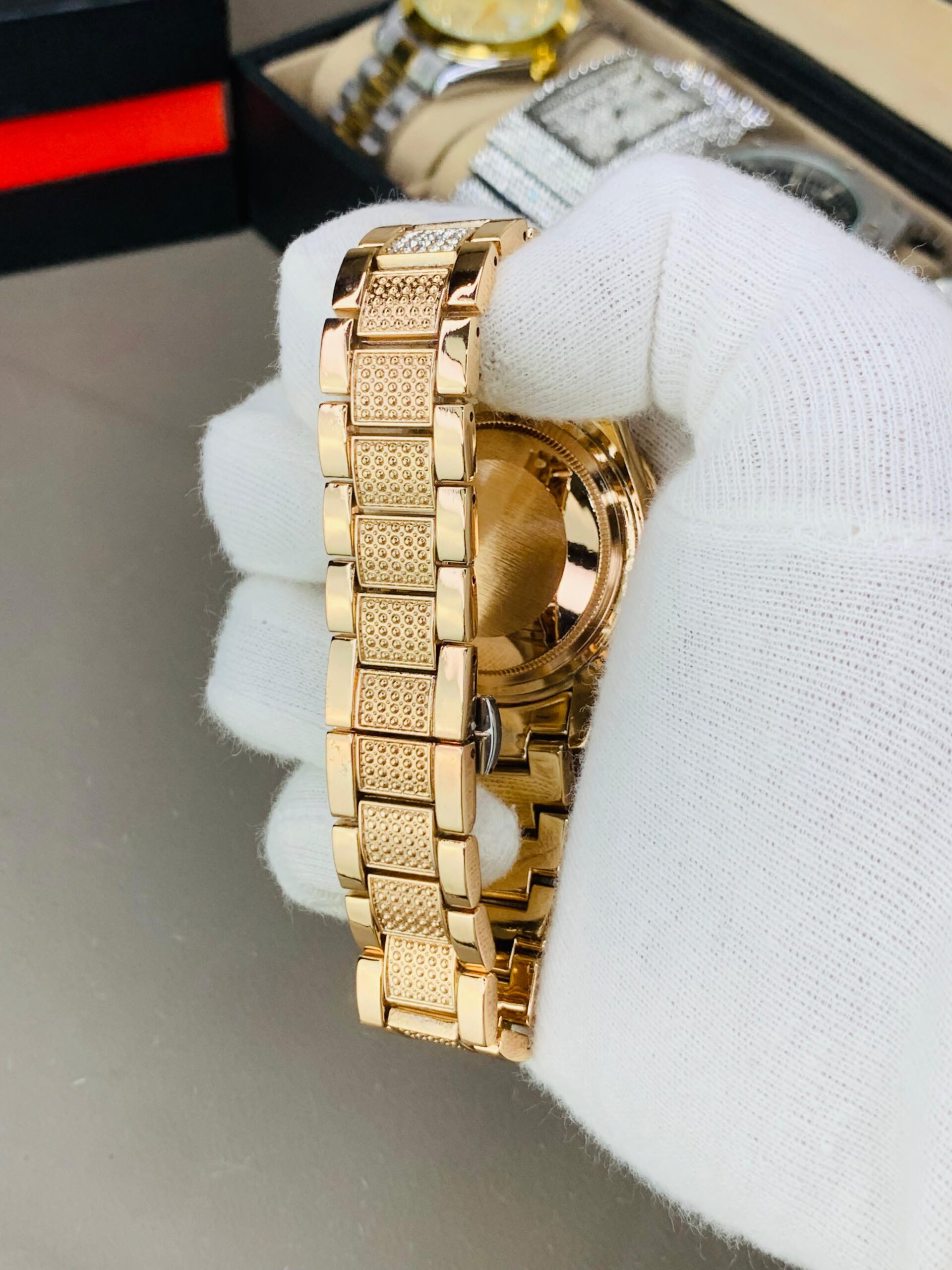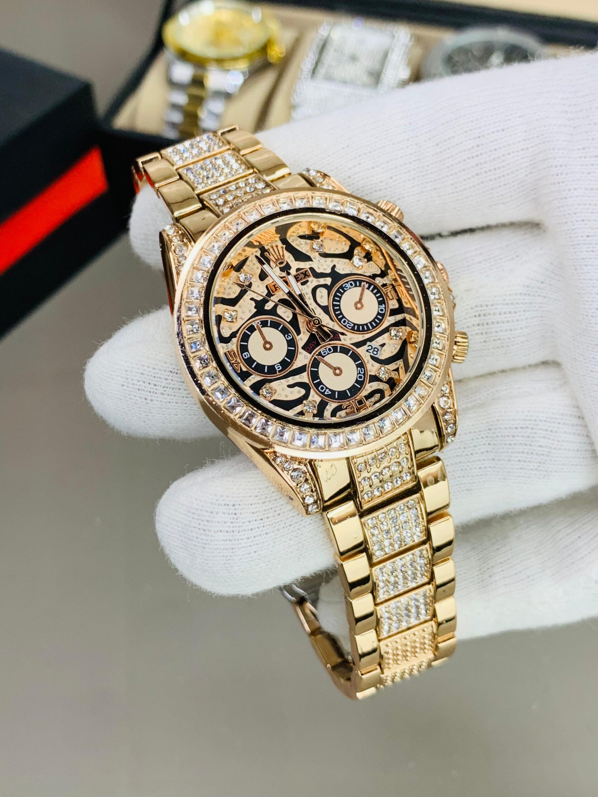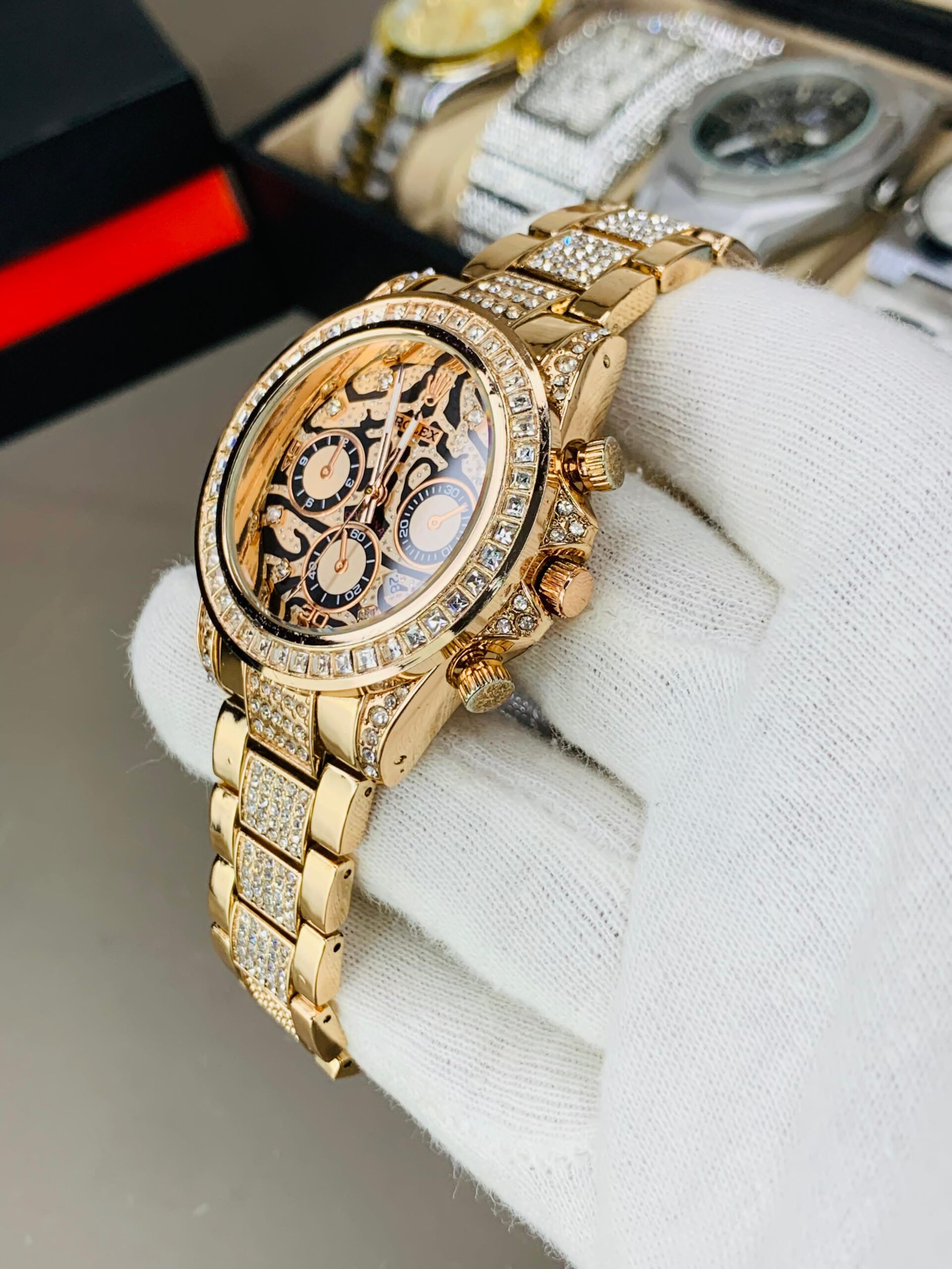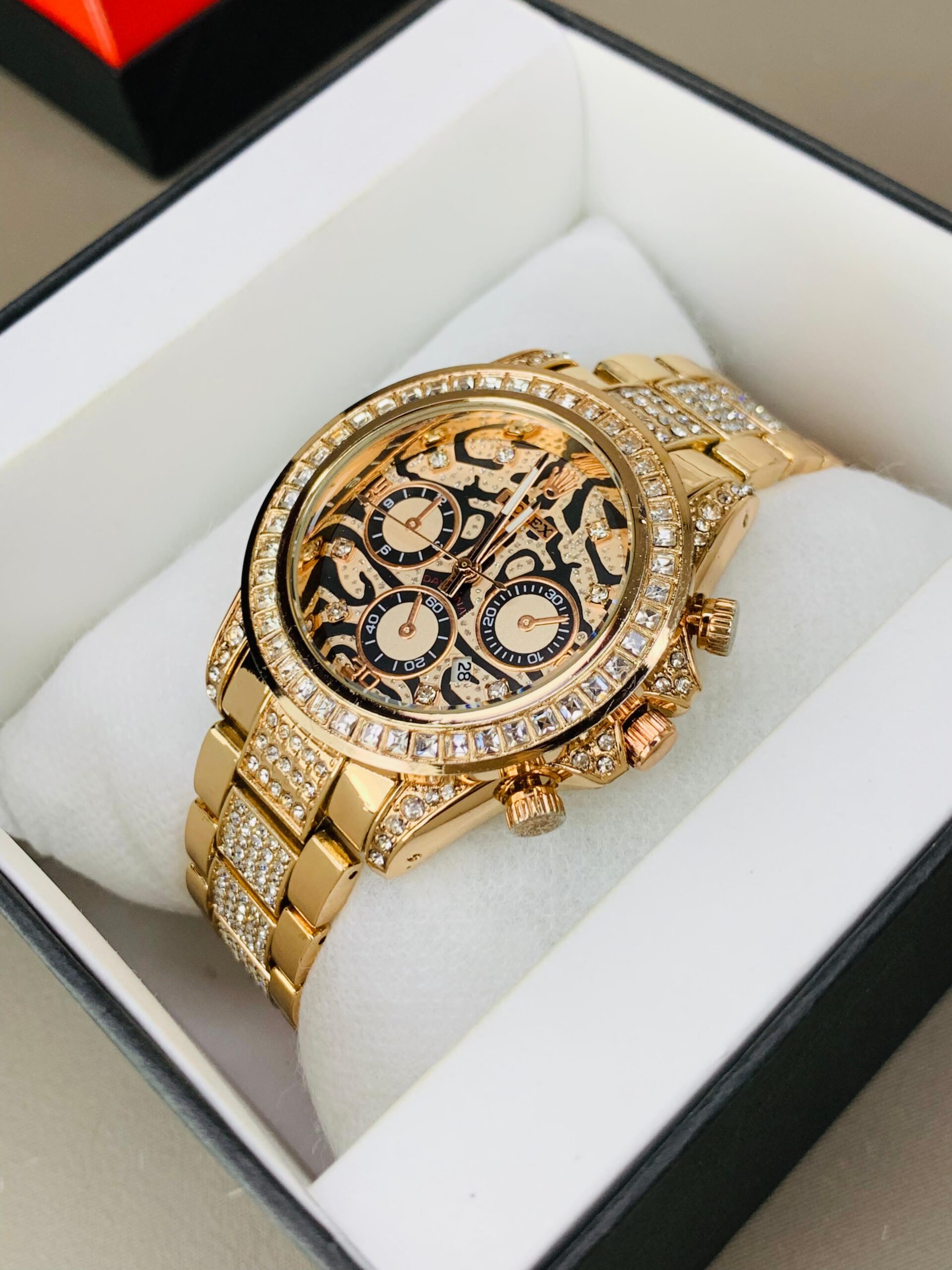 Diamond-studded bezel and bracelet: Adds a touch of sparkle and luxury.
